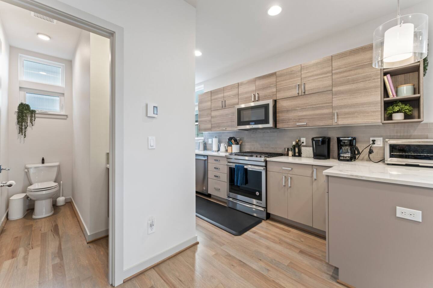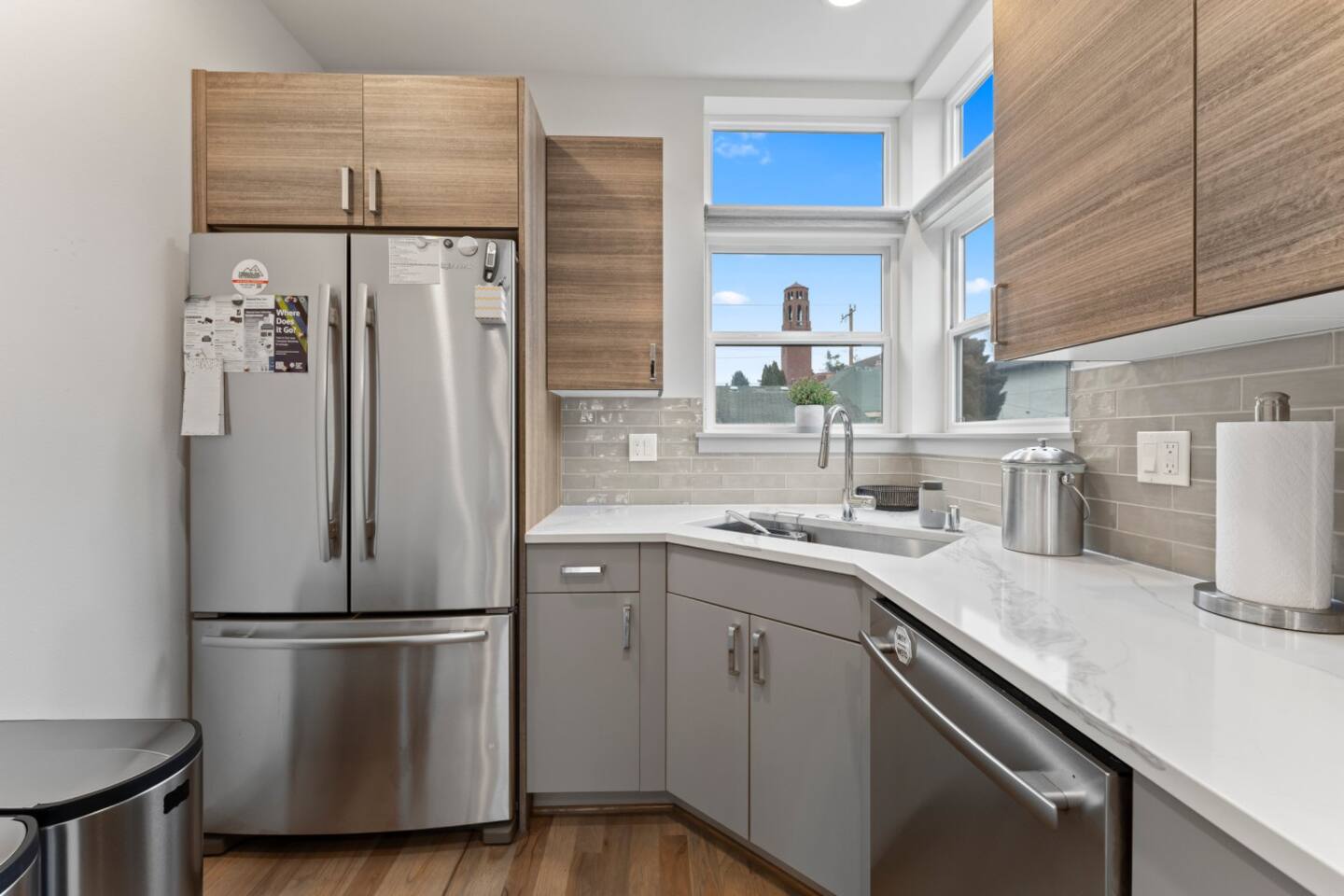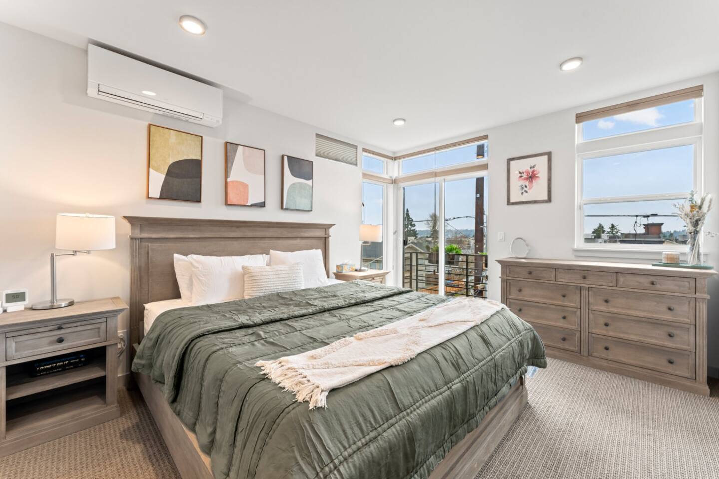 Welcome to your stylish retreat in the heart of Seattle’s vibrant Ballard neighborhood! This thoughtfully designed townhome offers four levels of comfort, convenience, and luxury, perfect for your next getaway. The Space: Step inside and explore the spacious layout: • First Floor: The entry-level features a cozy twin bunk room, ideal for kids or additional guests, alongside a full bathroom for convenience. You’ll also find a versatile bedroom with a blue couch, offering flexibility for lounging or sleeping. • Second Floor: The main living space boasts a bright and open floor plan. A fully equipped kitchen with modern appliances and ample counter space makes cooking a breeze, while the adjoining living room is perfect for relaxing or entertaining. A half bath is also located on this floor. • Third Floor: Retreat to the luxurious master bedroom featuring a plush bed and an en suite master bathroom. Relax in the spa-like soaking tub after a day of exploring the city. • Fourth Floor: Ascend to the crown jewel of the home: the stunning rooftop patio. Equipped with a gas fire pit, this outdoor oasis offers the perfect spot to unwind. Take in breathtaking views of the Seattle skyline and enjoy memorable evenings under the stars. Prime Location: Situated in Ballard, one of Seattle’s most sought-after neighborhoods, this home puts you close to everything. Explore the lively local scene with its eclectic shops, craft breweries, and exceptional dining options. A short drive or bus ride connects you to Seattle’s iconic attractions like Pike Place Market, the Space Needle, and Discovery Park. Amenities: • Rooftop patio with gas fire pit • Fully stocked kitchen and spacious living areas • Master suite with soaking tub • High-speed WiFi and smart TV • Washer and dryer Whether you’re here for a weekend getaway, business, or an extended stay, this home offers the perfect combination of luxury, space, and location. Book your stay today and experience Seattle at its best!