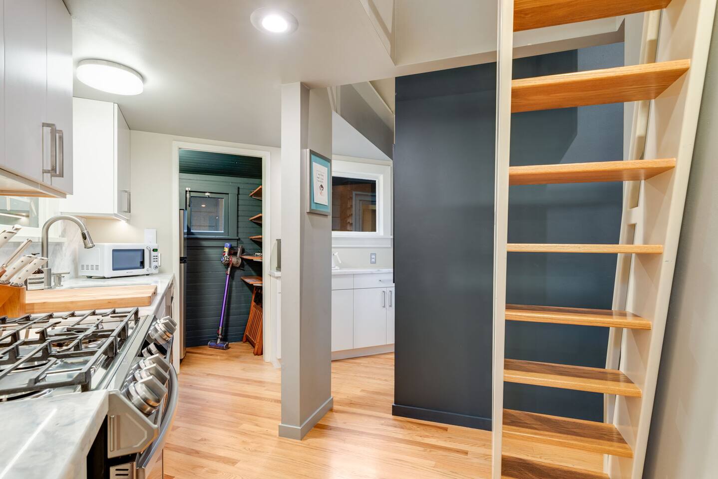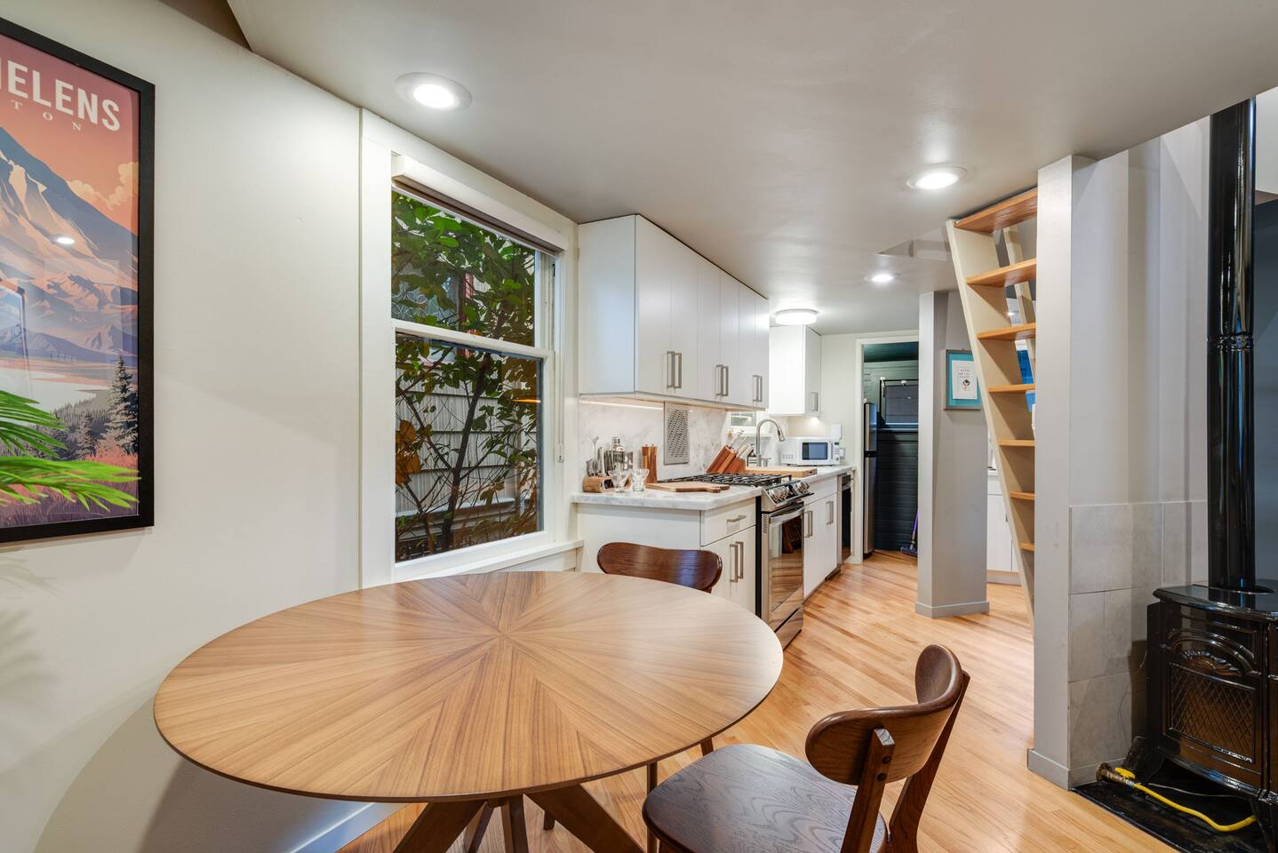 This home is not handicap friendly. The home has a few steps leading into the space and the bedroom lofted area is only accessible via a small, steep, narrow ladder. No dedicated parking spot, but paid and free street parking is available near the property. Absolutely No Parties. If any glitter or confetti is found after your stay, you will be charged an additional cleaning fee and may receive a negative review for not following our house guidelines.