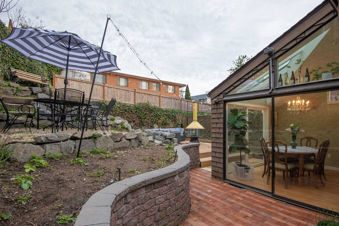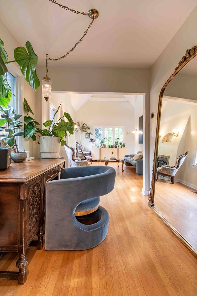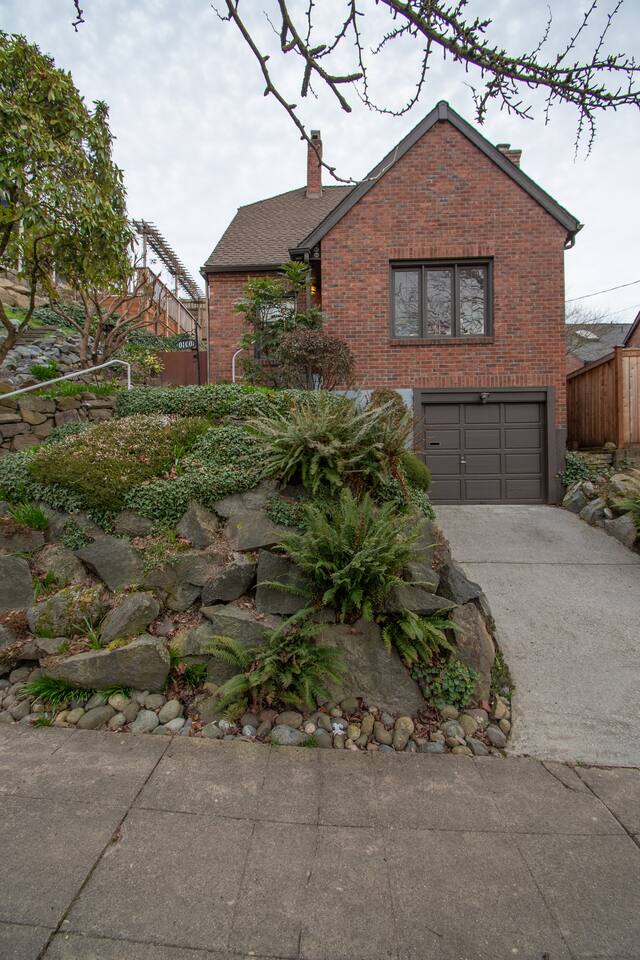 Step into this stunning remodeled brick Tudor, where classic charm meets thoughtful design. Bathed in natural sunlight and adorned with vibrant live plants, this home offers a warm and welcoming atmosphere. The main floor features two cozy bedrooms, a stylish bathroom with a tub, a bright living room, and a fully equipped kitchen that flows into a dining room with patio access—perfect for al fresco meals. Downstairs, the basement boasts in-unit laundry and a media room stocked with games for endless entertainment. Upstairs, a spacious loft awaits, complete with soaring vaulted ceilings, a tranquil reading nook by a sunny window, and a private bathroom. Outside, the beautifully landscaped grounds offer a peaceful escape, with a deck designed for lounging and relaxation. This one-of-a-kind home provides the perfect balance of comfort, charm, and convenience—ideal for your Seattle adventure.