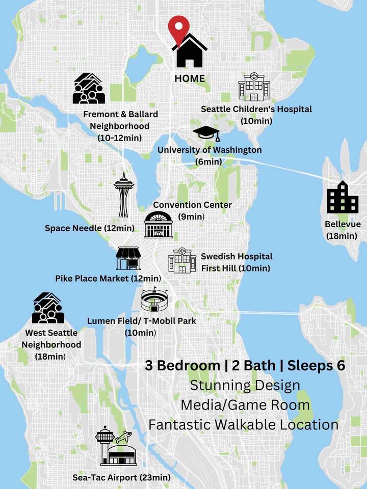 Perfectly located near Greenlake Village, Cowan Park, and a 6-minute walk to Roosevelt Station, this home offers comfort and convenience. Enjoy fast Wi-Fi, self check-in, and plenty of space to relax. Unwind on the outdoor patio or in the media room. With easy I-5 access and walkable to top restaurants, shops, and parks, this is an ideal base to explore Seattle and experience the vibrant Green Lake neighborhood.