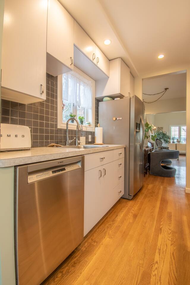 Please note, there are several stairs you'll have to take to enter the home. There are 18 steps into the house and 14 stairs up to lofted area. This home does not come with a parking spot. We recommend street parking. Free street parking is available directly in front of the home and in the surrounding neighborhood, though it is zoned and marked as 2-hour parking for non residents. We also do NOT provide a visitor zone parking pass. Although this seems strict, most guests have found that moving their car once a day is sufficient and have not experienced any issues or received tickets (though we do not guarantee this same experience for you). We don’t typically allow parking in the driveway as it’s very small (105” wide X 230” long). You can use it if you feel comfortable with how steep and narrow it is, but again, the home is listed WITHOUT having a designated parking spot. Absolutely No Parties. If any glitter or confetti is found after your stay, you will be charged an additionally cleaning fee and possibly negative review for not following our house guidelines. Lastly, Seattle is one of the least air conditioned cities in the US, with only 33% of households having it because historically, we haven’t needed it. Obviously things have changed and it can get warm here. The home does not have central A/C but we have a rolling A/C unit for the loft. Additionally, we have provided fans for each of the bedrooms and two larger fans for the lofted area. Other than what’s provided we do not provide refunds outside of the refund window due to weather.