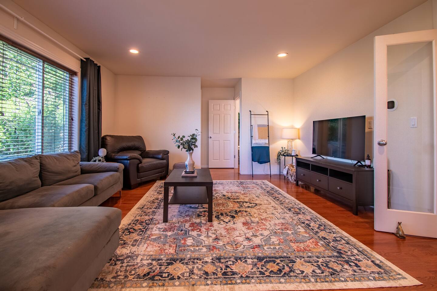 Please note there are multiple sets of stairs in between each floor of the home. The home is located just off I-5 so the potential for street noise is pretty high. The home comes with designated parking for 3 cars but they’ll have to be parked one behind the other. Absolutely No Parties. If any glitter or confetti is found after your stay, you will be charged an additionally cleaning fee and possibly negative review for not following our house guidelines. Lastly, Seattle is one of the least air conditioned cities in the US, with only 33% of households having it because historically, we haven’t needed it. The home does not have A/C and it can get hot at times. We have provided fans for each of the upstairs bedrooms and a portable A/C unit for the main living space. Other than what’s provided we do not provide refunds outside of the refund window due to weather.