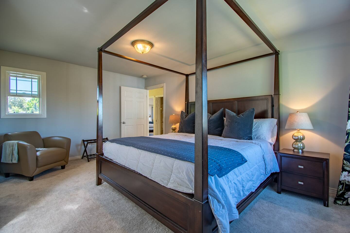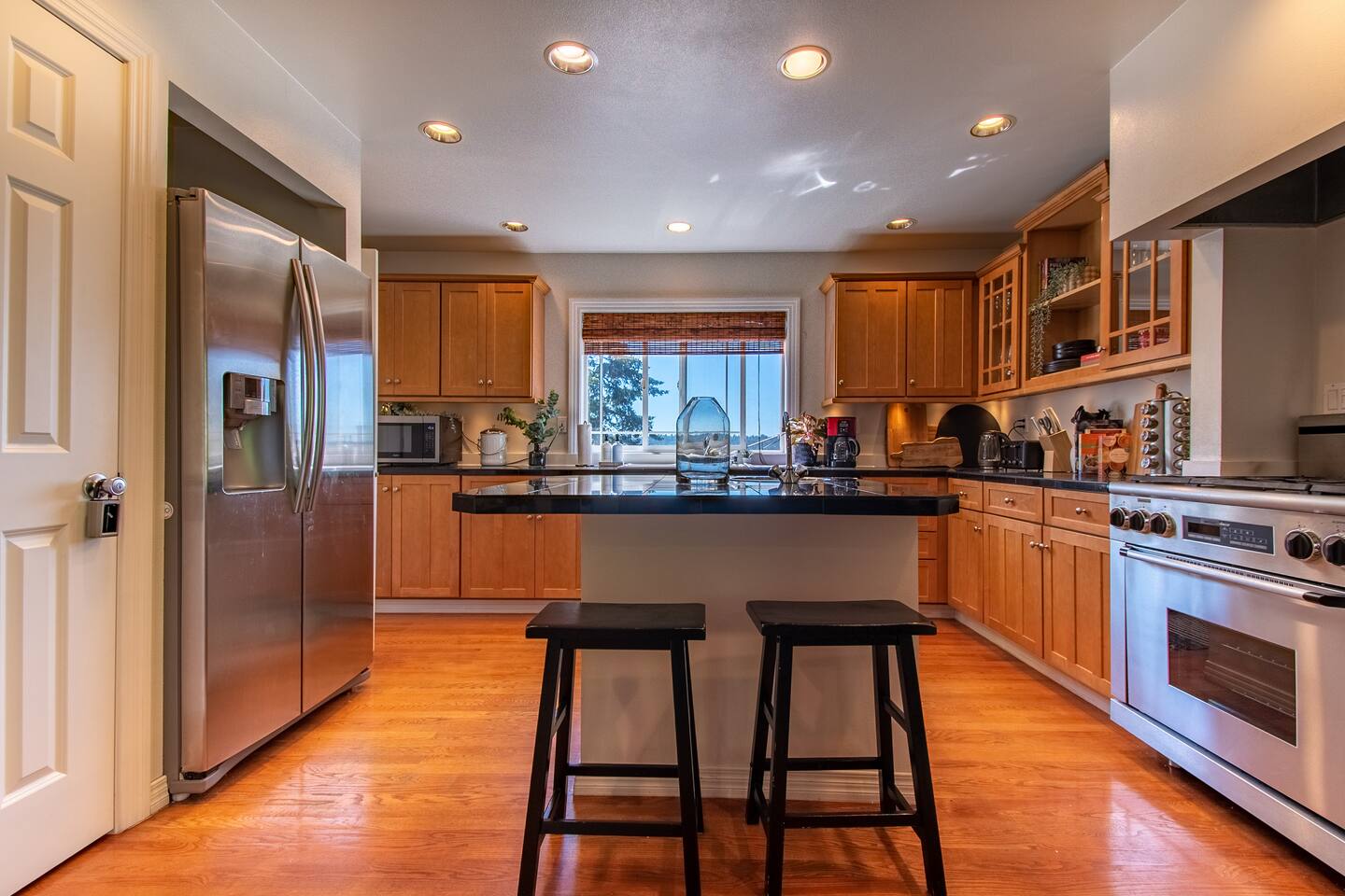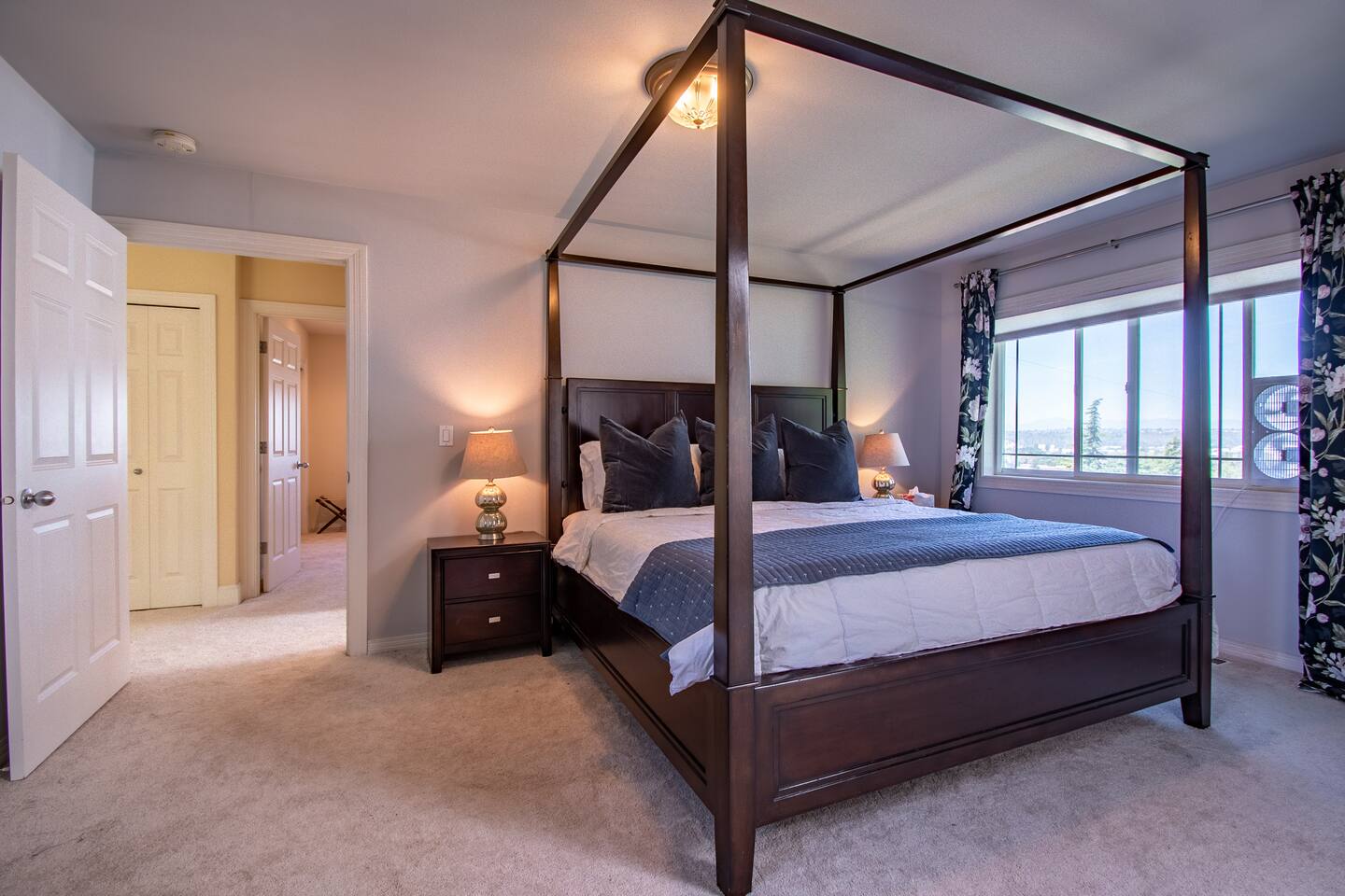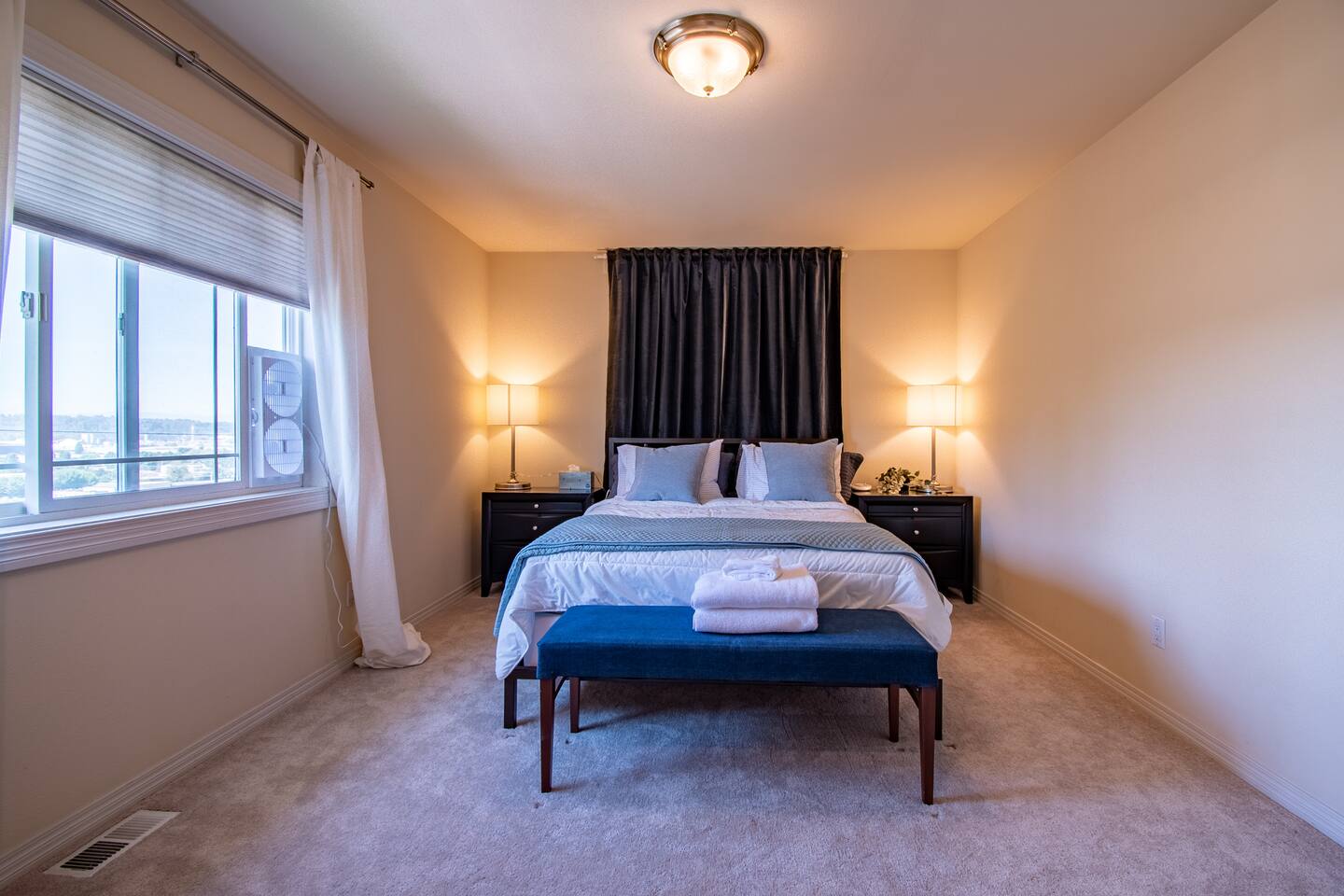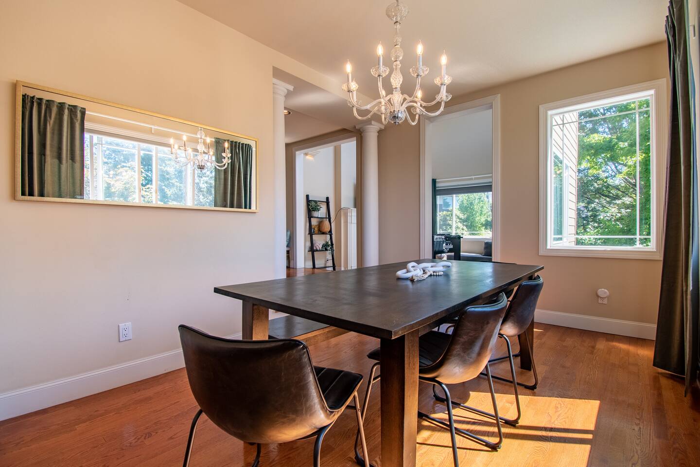 This stunning 4-bedroom + den home is designed for comfort, style, and functionality, making it perfect for large families or groups. With soaring two-story ceilings, elegant finishes, and ample space, this home offers everything you need for a memorable stay. Main Floor: Bright and open living room with two-story ceilings and beautiful hardwood floors. Formal dining room with breathtaking views of the Olympic Mountains. Chef’s kitchen featuring granite countertops, a high-end Dacor 6-burner stove, and stainless-steel appliances. Private den, perfect for remote work or quiet reading. Half-bathroom for convenience. Upper Floor: Luxurious master bedroom with an en-suite bathroom featuring a soaking tub, dual sinks, and a spacious walk-in closet. Two additional bedrooms with cozy furnishings and ample closet space. Full shared bathroom for the secondary bedrooms. Lower Level: Two-car garage with plenty of storage. This floor also has a bedroom featuring a queen bed as well as a bathroom. Perfect for guests wanting to avoid the stairs. This elegant home combines modern amenities with thoughtful design, offering plenty of room for relaxation, gatherings, and enjoying Seattle's beauty.