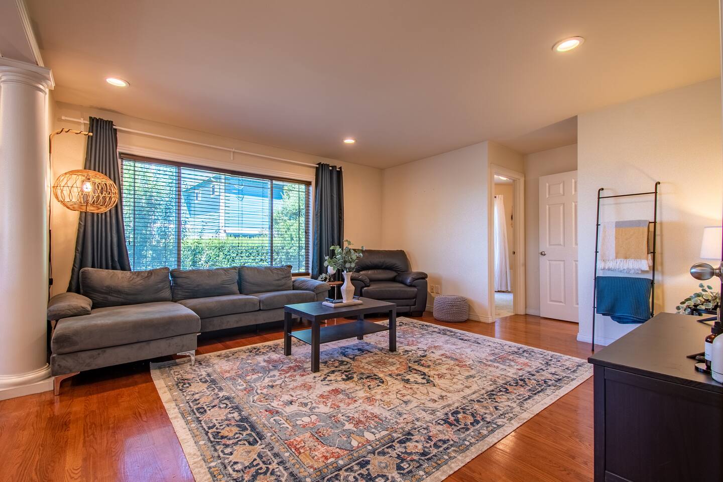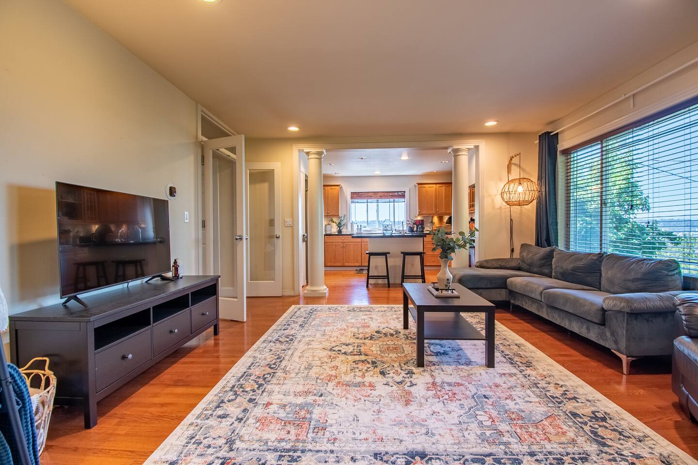 Bring the whole family to this spacious home just off the highway—perfect for large groups! Comfortably sleeping 9, it features two cozy living rooms, a private office, and a sprawling open-concept kitchen ideal for gatherings. Designed for comfort and convenience, it’s fantastic for family getaways or visiting friends. With blazing-fast 940mbps fiber internet, enjoy seamless streaming or staying connected during your stay. An ideal home base for your Seattle adventures!